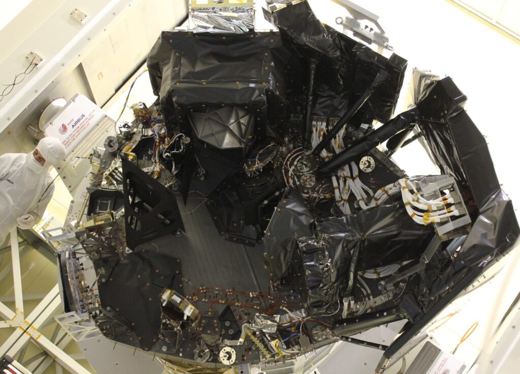 Euclid’s instrument bay is mostly light-tight, meaning there are just very defined openings to lead the scientific light beam towards Euclid’s instruments (with an exception). It’s not hermetically sealed, because the ambient air before launch needed to escape, so the light-tight sealing facilitated by so-called ‘multi-layer insulation’ (MLI), several layers of tinted aluminised plastic foil. This foil has small holes in it for air to escape, and several layers on top of each other make sure that these holes don’t align and let sunlight pass inside.
