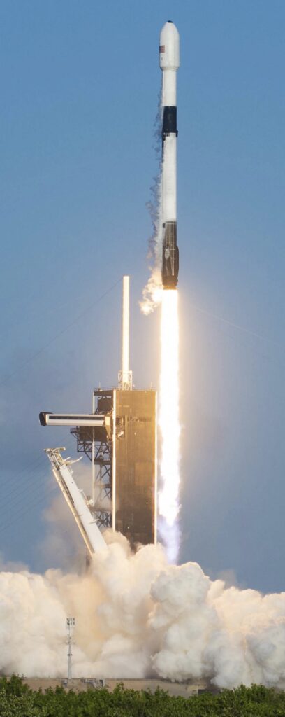 Falcon 9 is a reusable, two-stage rocket designed and manufactured by SpaceX for the reliable and safe transport of people and payloads into Earth orbit and beyond. Falcon 9 is the world’s first orbital class reusable rocket. Reusability allows SpaceX to refly the most expensive parts of the rocket, which in turn drives down the cost of space access. At the time of writing, Falcon 9 has had 213 successful launches, including 153 reflights of a first stage, and 182 total landings of the first stage. Falcon 9 has an incredible success rate (213/214) and the longest streak of successful launches in history. Falcon 9 current average launch rate is about one every four days.