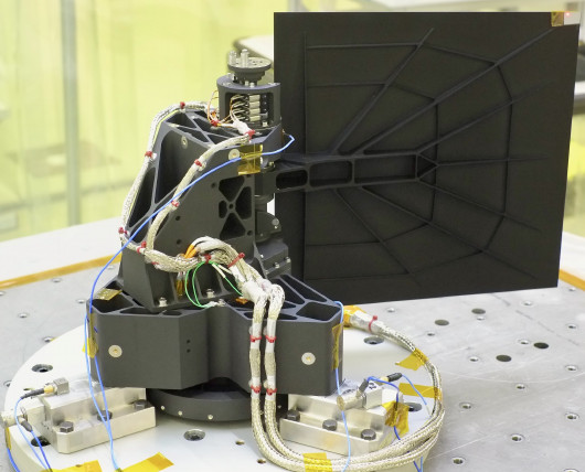 The grism wheel on the right houses the four grisms that are mounted inside NISP.
