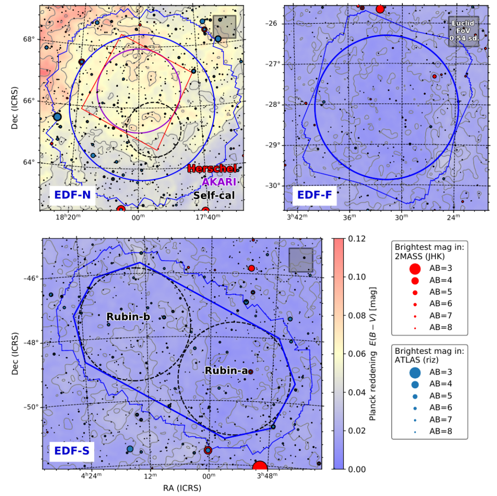 The paper also describes details of the surveys Euclid will conduct, which includes the deep survey field near the ecliptic north and south pole as well as in Fornax. This will allow astronomers plan to observe auxilliary data in these fields ahead of the Euclid data releases – the first of which (“Q1”) will actually already cover these deep fields and will release data to the world in early 2025.
