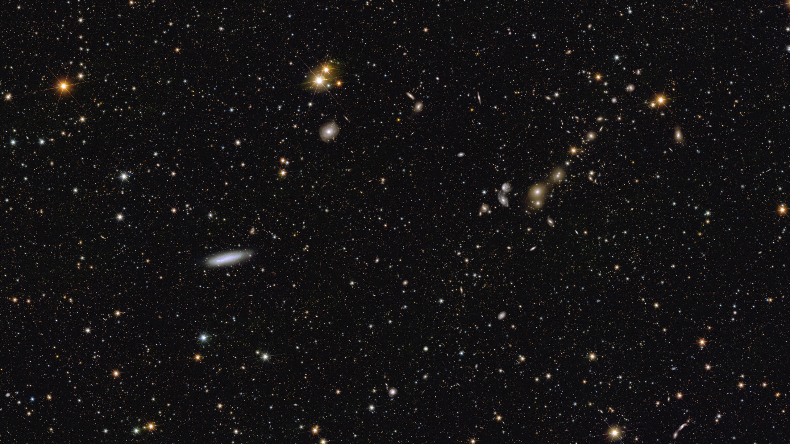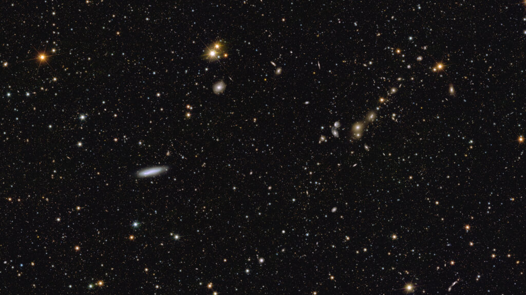 If one would look in very fine detail at higher and higher resolution – which is shown for a zoom-in area – one would be able to see and investigate around 14 million individual galaxies. All of these will be used in Euclid’s cosmology mission to map dark matter and cosmic structure across the epochs.