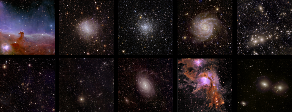 An Early Release Observations program was conducted during Euclid’s first months in space as a first look at the depth and diversity of science Euclid will provide. A total of 24 hours was allocated towards specific targets chosen to produce stunning images, also relevant for scientific research. Five of these images were released in November, 2023 (see ESA’s press release of November 7, 2023). The remaining five are being published today, May 23rd, 2024, by ESA (see ESA’s press release of May 23rd, 2024).