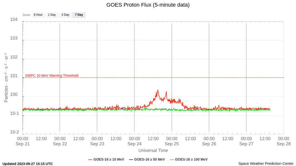 There are satellites that explicitly monitor ‘space weather’. The GOES-16 satellite by NASA provides real-time measurements of X-ray, electron, and proton fluxes in space: